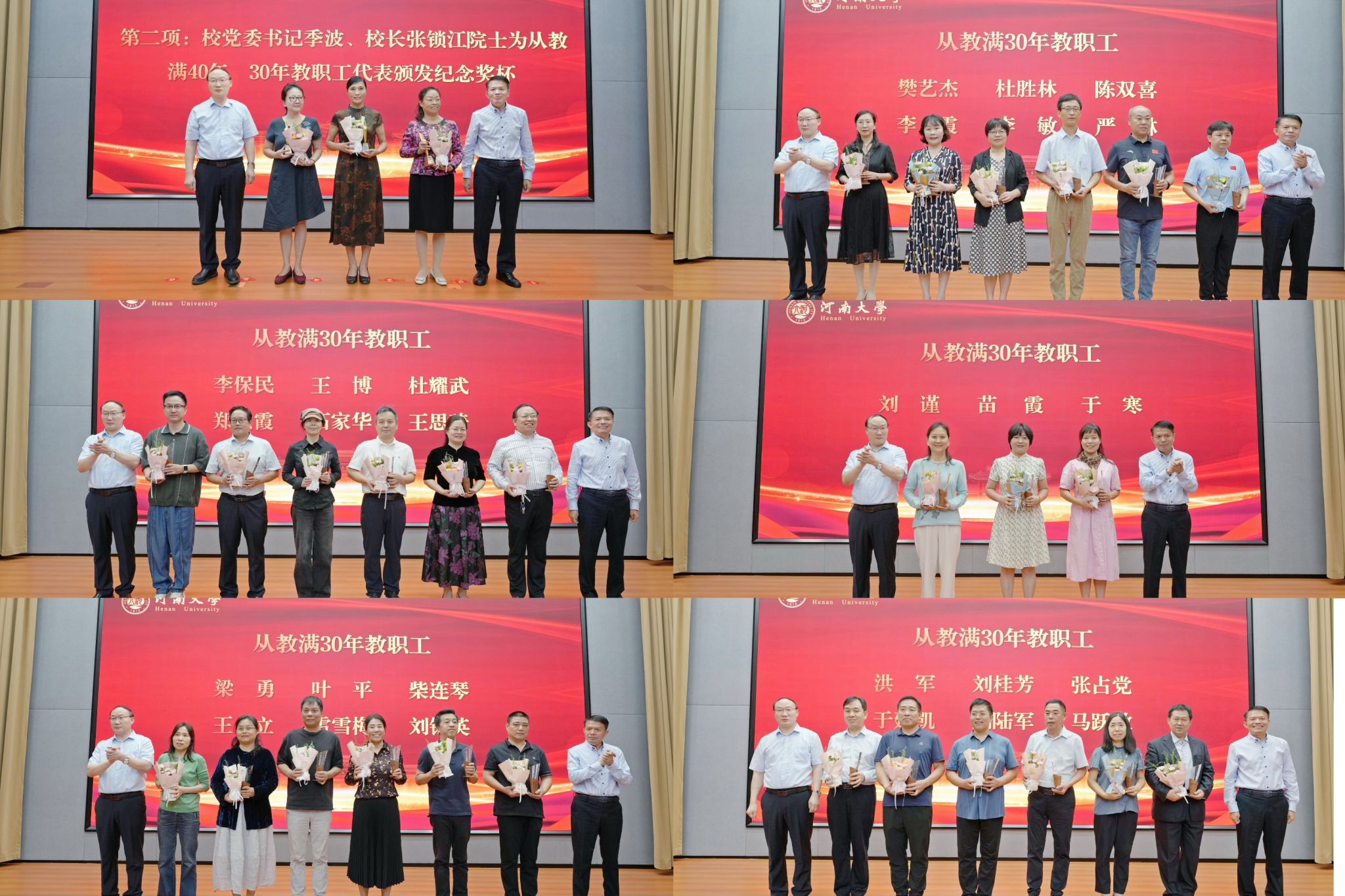 张锁江强调,打造一支结构合理、素质过硬、富有活力的强大师资队伍是一流大学建设的必然要求。学校始终坚持“以教师为中心”的发展理念,致力于为老师们创造更优的成长发展环境,实现教师个人价值与学校发展、时代进步的同频共振。要持续加大人才引育,尤其是要加强青年人才培养,设立多元化的青年支持项目和奖项,给予资金支持、人文关怀和成长空间,大力培育让青年人脱颖而出的沃土;要在职称评定、绩效奖励、考核评价等方面持续改革创新,构建符合教师成长规律的制度体系,让老师们的创新潜能和创造活力能够得到充分发掘;要大力传承老一辈河大教师“爱生如子、朴实无华”的师德风范与优良传统,积极弘扬“自信、拼搏、开放、创新”的新河大精神,着力营造让广大教师静心从教、潜心治学,宁静平和、奋发向上的创新文化生态。